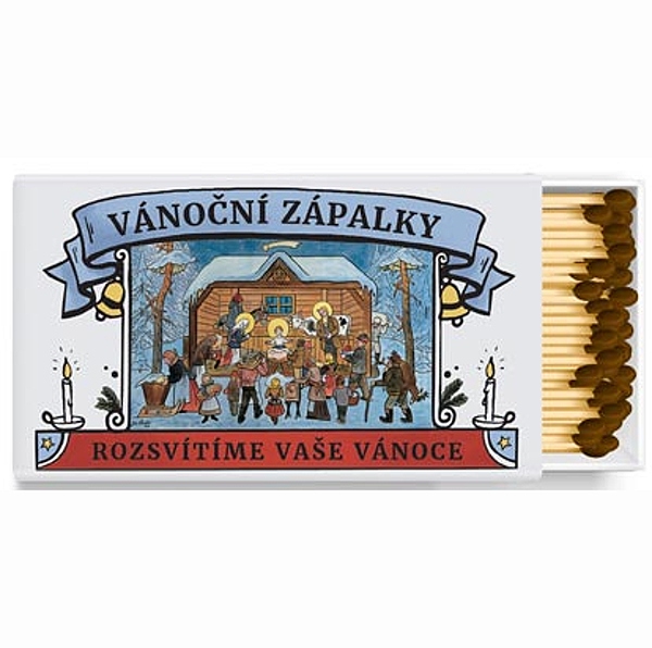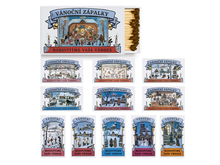 Dlouhé zápalky s ilustracemi Josefa Lady propojují užitečnost s atmosférou tradičních českých Vánoc. Krabičky zdobí typické zimní motivy – betlém, kostelík, chalupy pod sněhem nebo koledníci – známé z Ladovy tvorby, která evokuje klid a poetiku venkova.