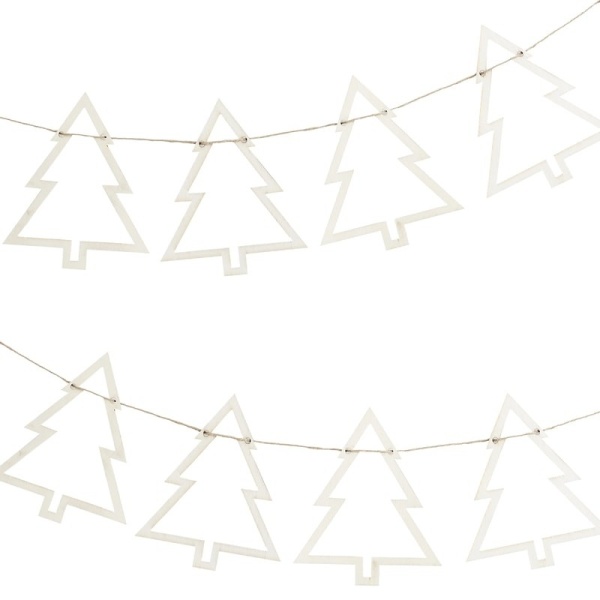 Girlanda s dřevěnými vyřezávanými stromečky je krásná a přírodní výzdoba vašich vánoc.