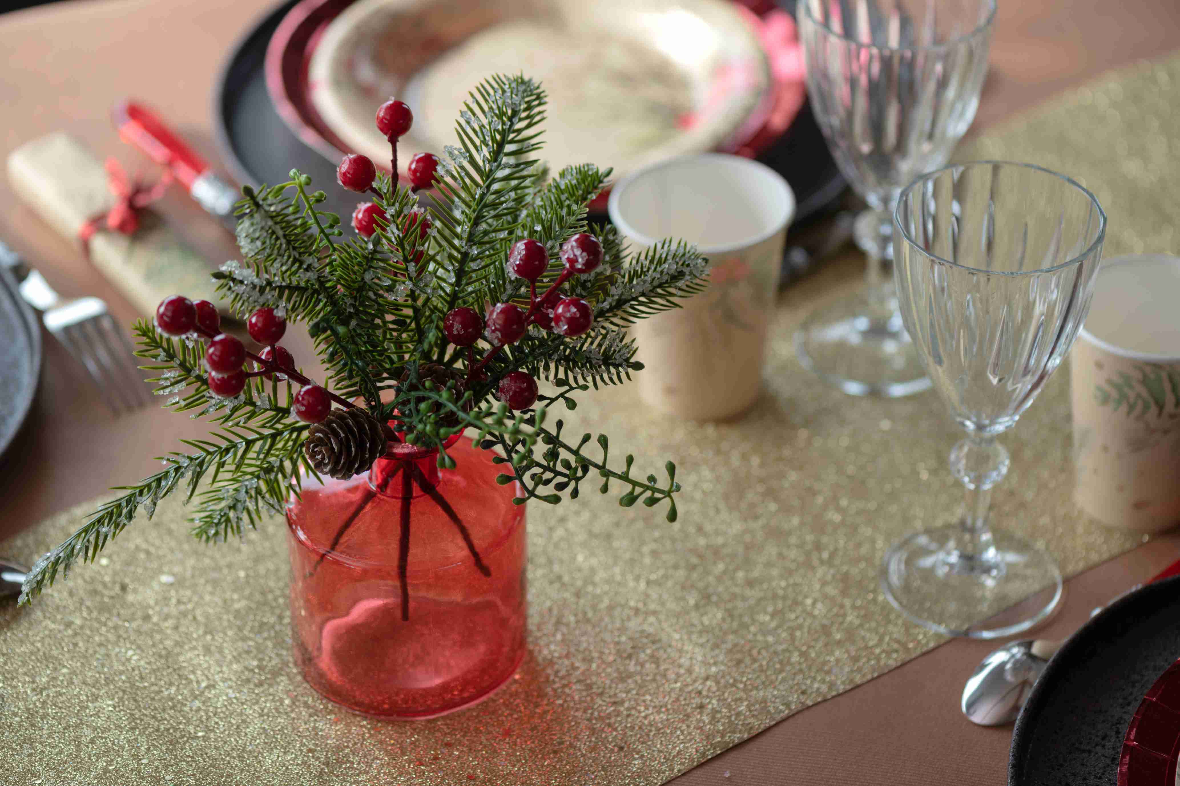 Vánoční větvička - mrazivá cesmína. Krásná dekorace pro vánoční stůl i přízdoba pro zdobení Vánoc