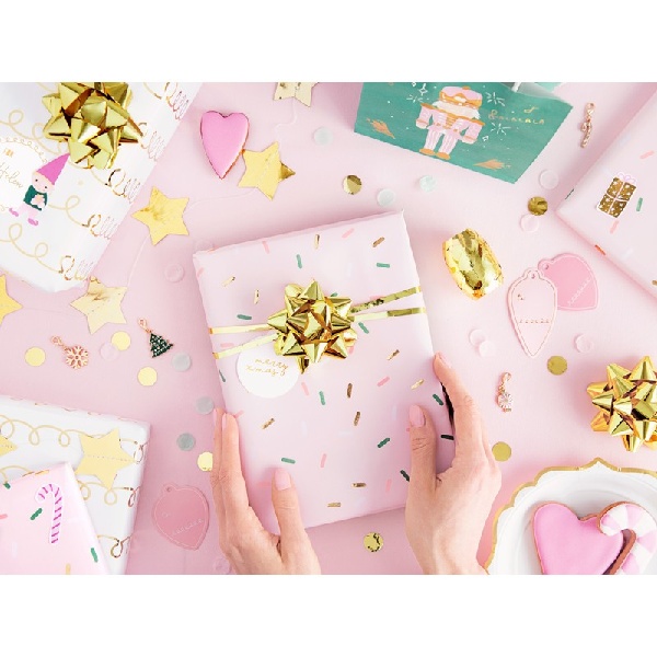 Samolepky krásně ozdobí vaše vánoční dárky a dodají jim jemné růžové kouzlo se skřítky. Jsou milým doplňkem dárku pro děti.