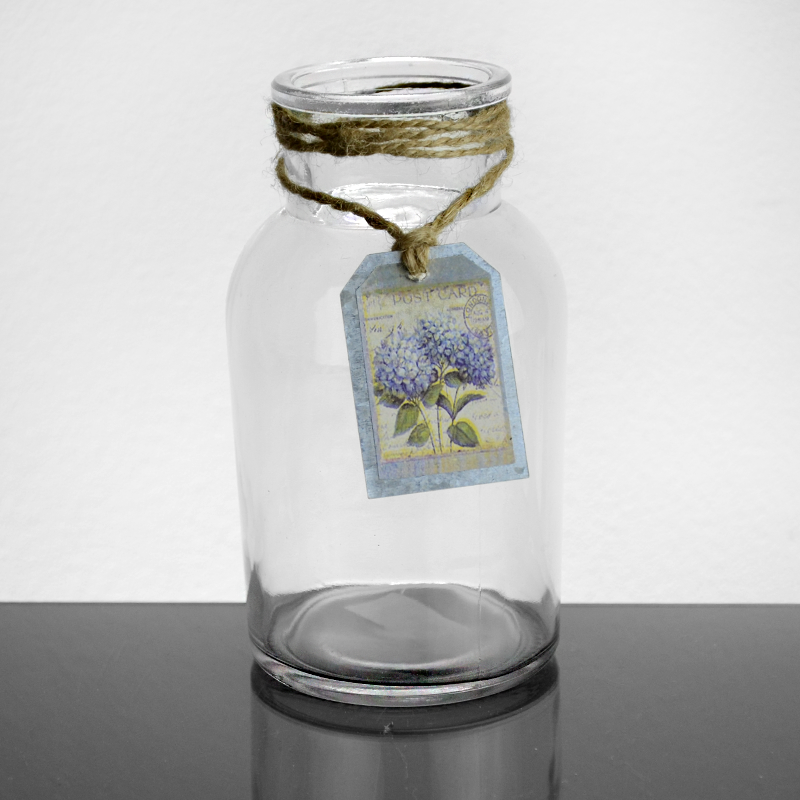Váza s obrázkem hortenzie - vhodná na rustikální a vintage tabule