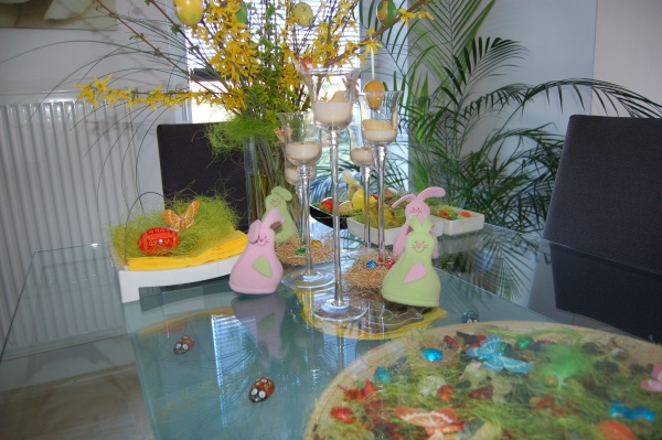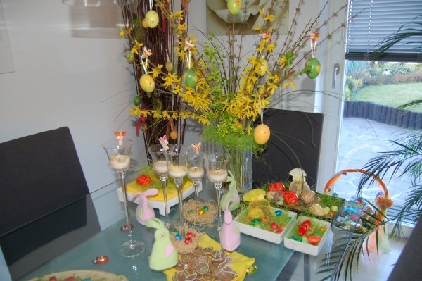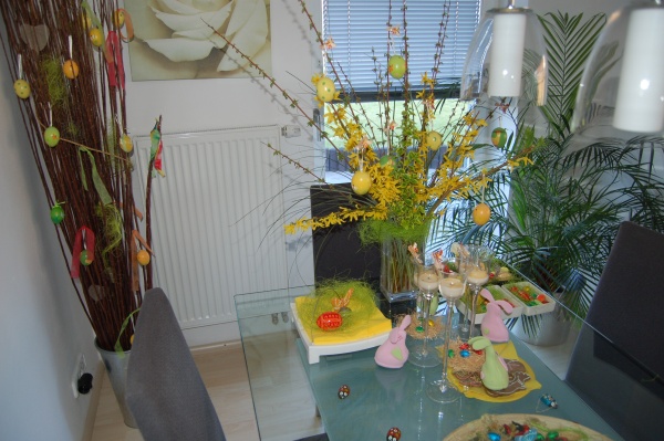 Výzdoba na Velikonoce prostě musí být pestrá a svěží. Ubrusy a ubrousky s jarními motivy na svátečně prostřeném stole. Velikonoční nádoby s rašícím osením, čokoládovými zajíčky a figurkami. Květináče s velikonočními motivy s osázenými bylinkami na kuchyňském parapetu.  Za oknem cibulky s čersvě rašícimi narcisy, proutěné věnečky s mašličkami zavěšenými na oknech, ozdobené vrbičky se stužkami a vajíčky na zahradě. To všechno patří k symbolům Velikonoc  a prvním jarním svátkům. Co však jednoznačně nesmí chybět Velikonocům jsou pestrá vajíčka a připravené pomlázky.