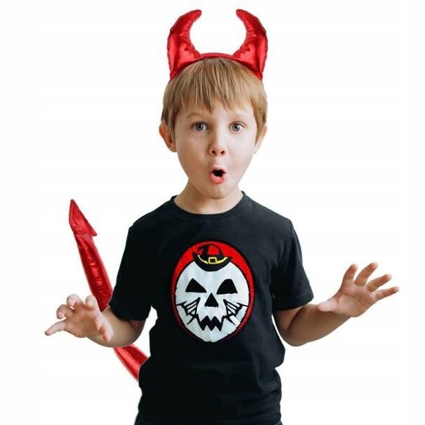 Set Ďáblík se skládá se z čelenky s charakteristickými ďábelskými rohy a dlouhým, červeným ocasem s trojúhelníkovou špičkou, který dodá každému stylingu bláznivý charakter.