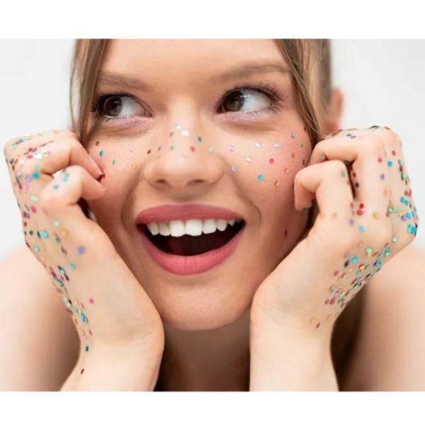 Barevné třpytky na obličeji vám skvěle doladí váš outfit. Rozjasní a především rozzáří váš obličej.