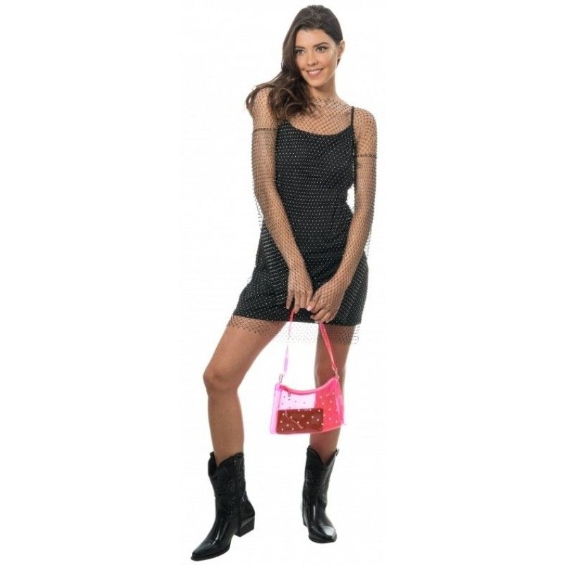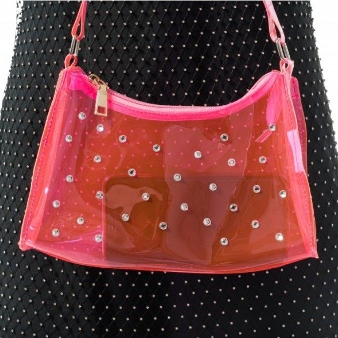 Dámská růžová kabelka z PVC průhledná s kamínky
