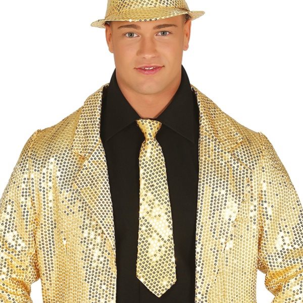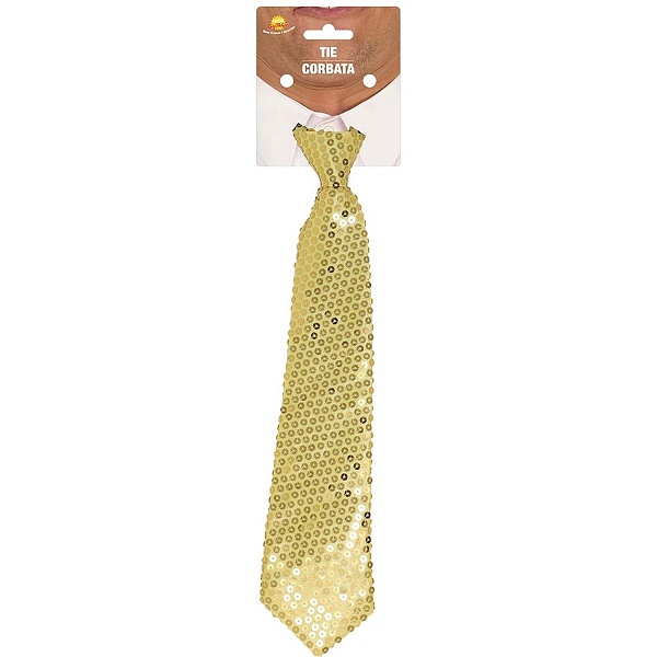 Kravata s flitry ve zlaté barvě pro dospělé.