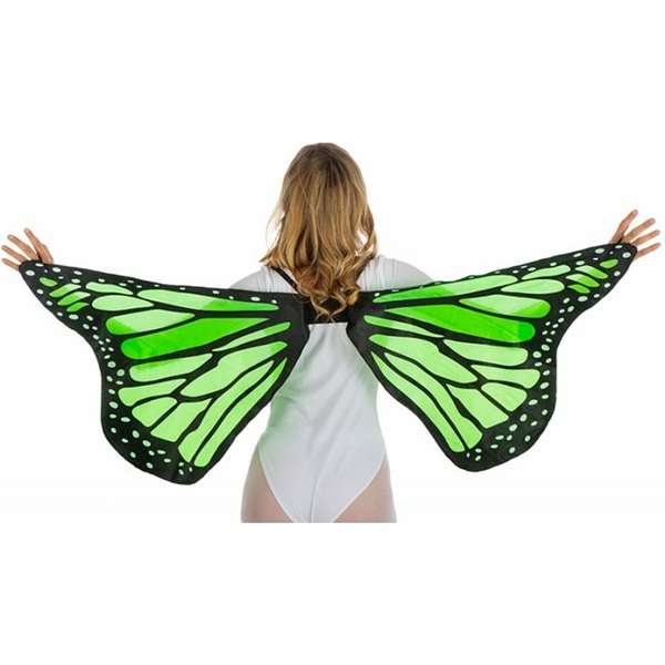 Tato motýlí křídla mají délku cca 90 cm a šířku 80 cm a snadno se nasazují díky elastickým ramenním popruhům a poutkům na prsty.