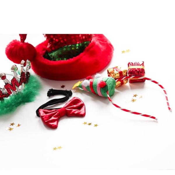 Ozdobný motýlek je kolem krku na gumičku a jeho výška je 6 cm a šířka 18 cm.