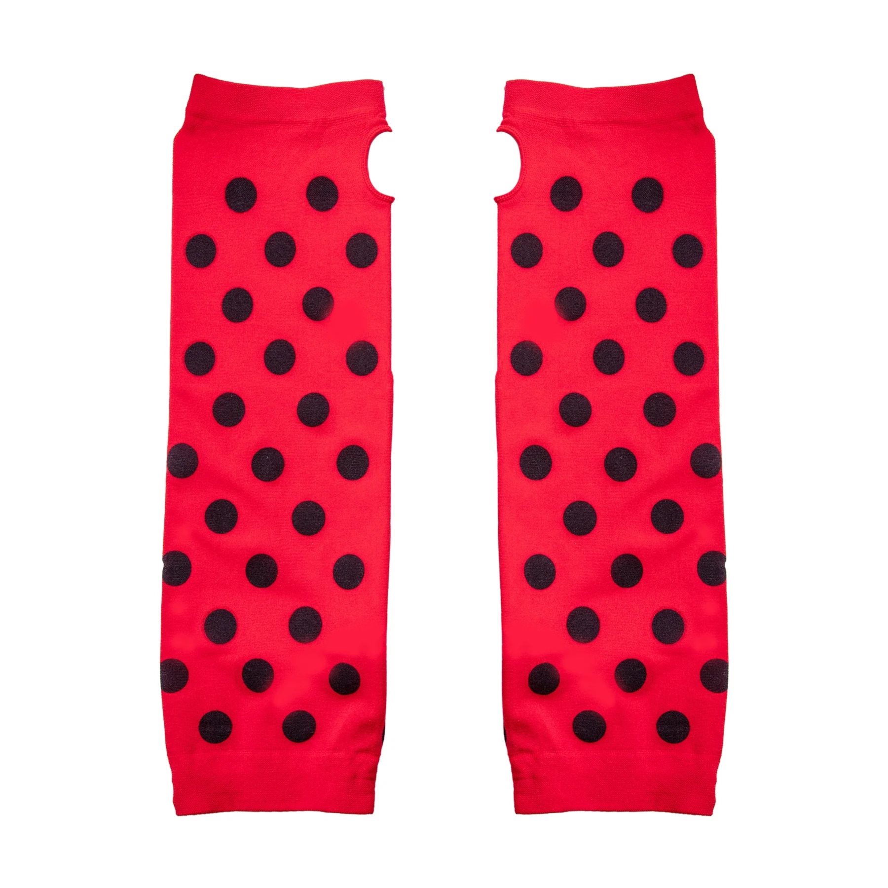 | Dětské dlouhé rukavice bez prstů v červené barvě s černými puntíky Červené párty rukavice bez prstů s černými puntíky … |
