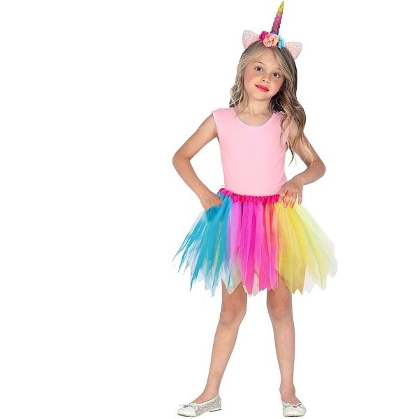 Vícebarevná vrstvená tylová sukýnka je ideální doplněk ke kostýmu Jednorožce.