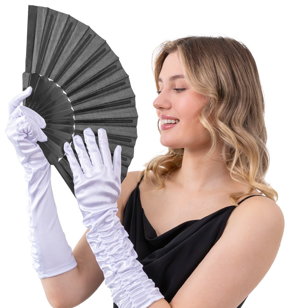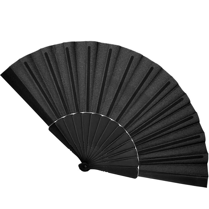 Tento stylový černý vějíř je elegantním doplňkem kostýmů, jevištních vystoupení, focení a letních outfitů.