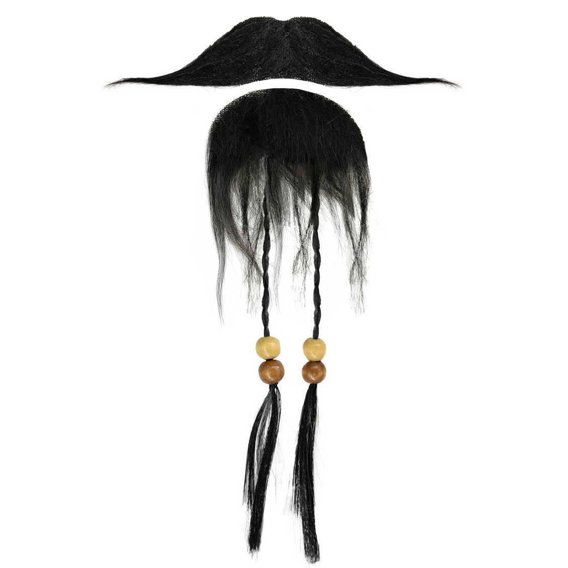 Pirátská sada - umělé vousy s korálky a knír v černé barvě.
