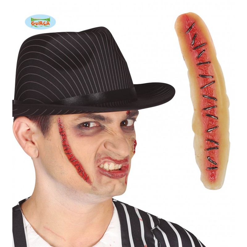 Tato dlouhá jizva je latexová a ránu je nutné pouze zalepit dodaným kožním lepidlem.