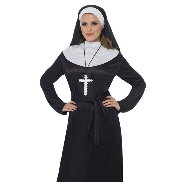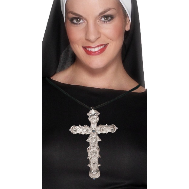 | Zdobený křížek ke kostýmu jeptišky Křížek je stříbrné barvy, zavěšený na černé šňůrce. Rozměr: 11 x 16 cm Materiál … |
