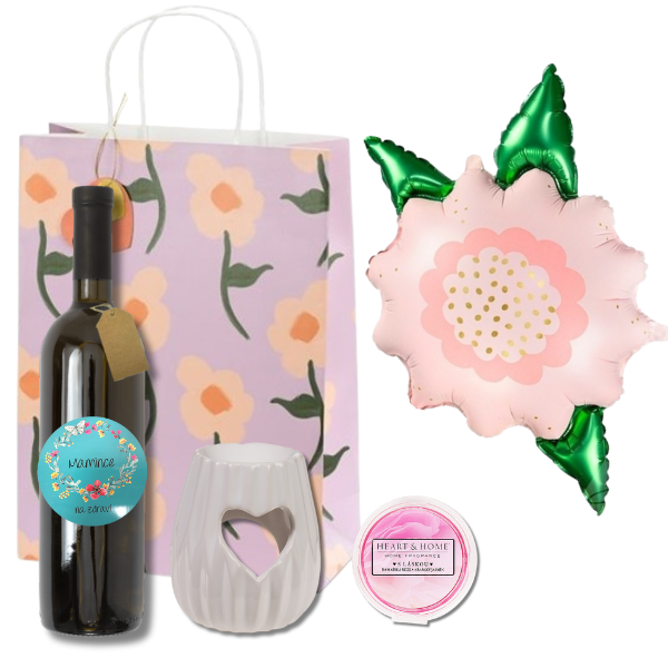 • Dárková taška s květinovým motivem (10 × 24 × 32 cm) – vše snadno zabalíte