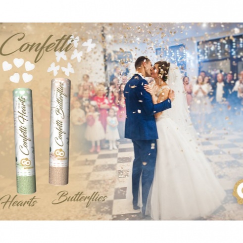 Konfety neobsahují pyrotechnické části, výstřel probíhá za pomoci stlačeného vzduchu. Vhodné na svatby a oslavy!