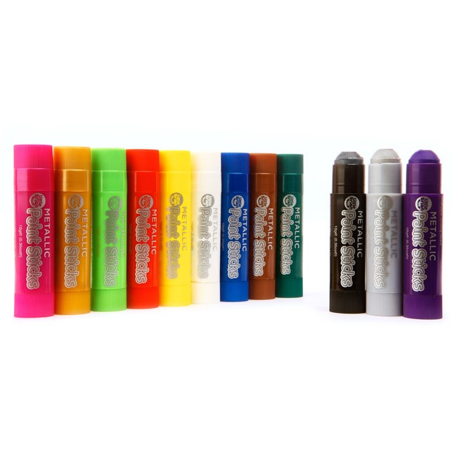 Sada 12 ks metalických barev je připravena pro malé výtvarníky, kteří si chtějí zkusit kreslit podobně jako s pastelkou, ovšem ve výsledku podobnému malování vodovými barvami.