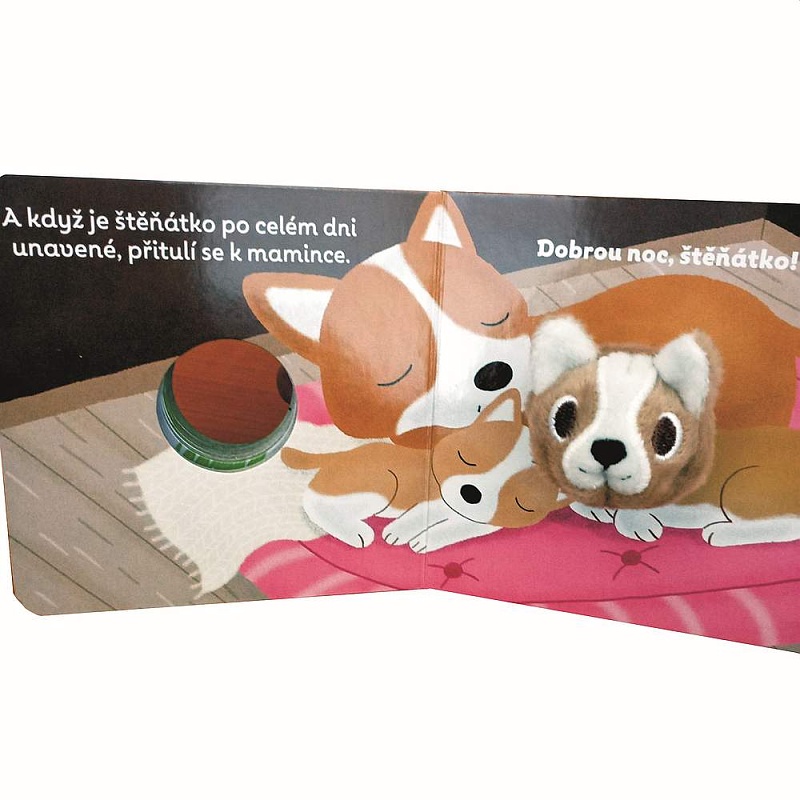 Maňáskovou knížku s plyšovým štěňátkem si oblíbí ty nejmenší dětičky. Zvířátko rozpohybujete prstem vsunutým do hlavičky - funguje jako maňásek. Čas strávený s mazlivým zvířátkem a jeho příběhem si děti zamilují.