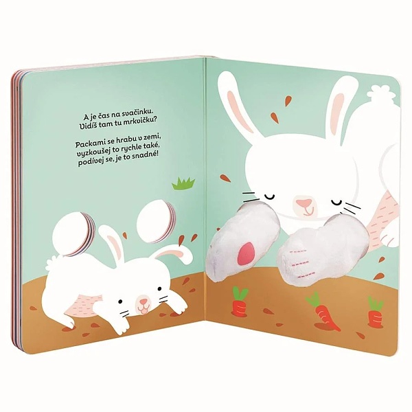 Maňásková knížka Obejmi mě! Králíček je vhodná pro děti od 18. měsíců.