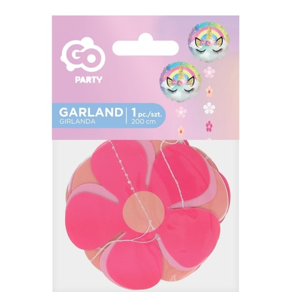 Papírová girlanda Růžové kvítky je originální dekorace, která se skvěle hodí jako ozdobný ocásek k balónku, nafouknutého héliem.