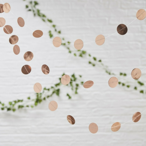 - jednoduchá a elegantní girlanda z koleček v barvě růžového zlata povýší každý prostor na luxusní