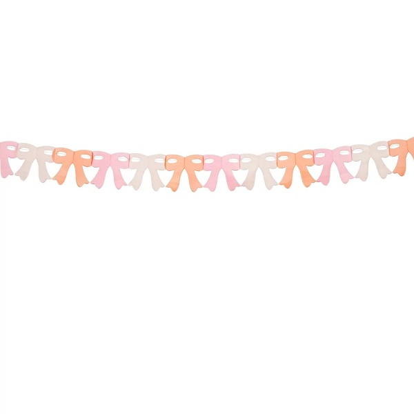 Papírová girlanda ve tvaru opakujících se mašliček v pastelové růžové, bílé a krémové je perfektní volbou pro narozeniny pro dívky a ženy.