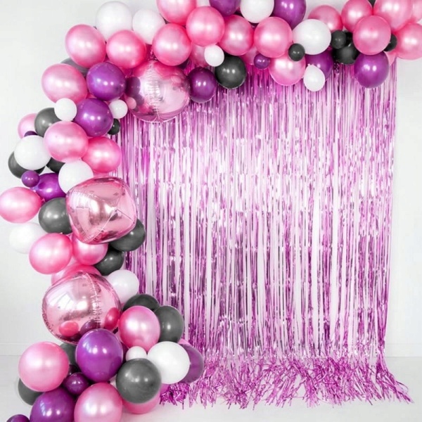 Metalický závěs v tmavě růžové barvě je ideální doplněk pro narozeninové oslavy, párty a svatby