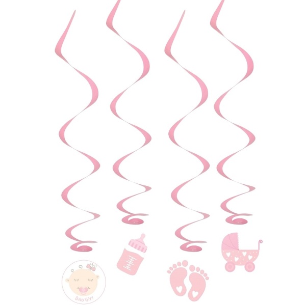 | Spirálová papírová dekorace Baby girl ve světle růžové barvě, určená pro oslavu narození holčičky nebo jejích 1. … |