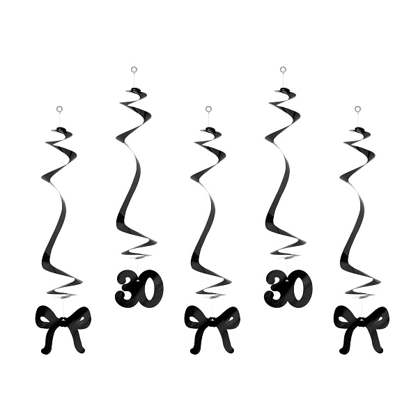 Narozeninové závěsné spirály s číslem 30 a s mašličkami v černé barvě jsou perfektní volbou pro výzdobu vašich jubilejních 30. narozenin.
