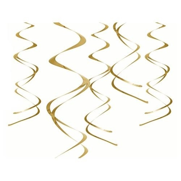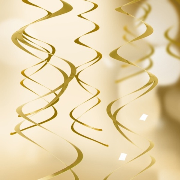 Závěsné spirály z lesklé zlaté fólie jsou nápaditý doplněk pro dekoraci Vaší párty, narozenin nebo oslavy silvestra.