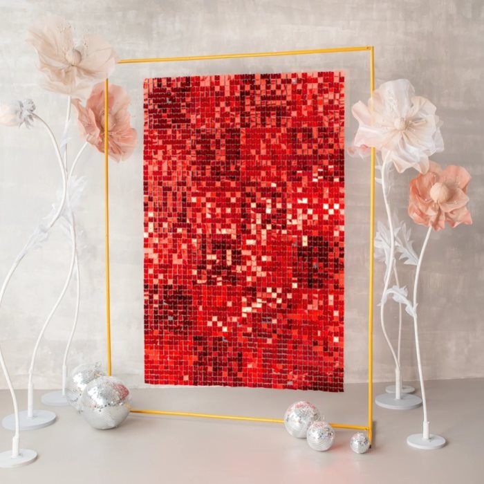 Dekorační červený panel, který vytváří atraktivní kulisu pro focení nebo velkolepou párty.
