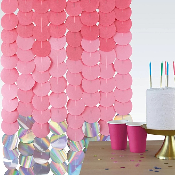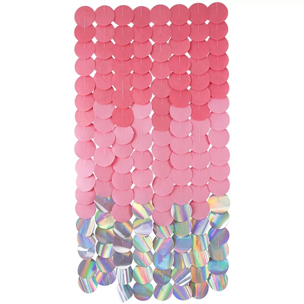 Toto závěsné pozadí se skládá z 8 pramenů, každý s 18 kolečky o průměru 7,5 cm.