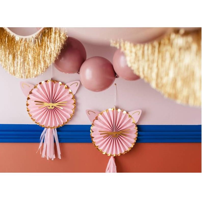 Papírové dekorativní rozety ve tvaru kočičích hlav s ušima a třásněmi