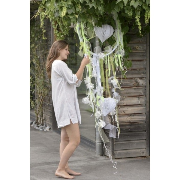 Stahovací kokardy jsou také hezké jako závěsná dekorace spolu s jinými svatebními dekoracemi a doplňky.