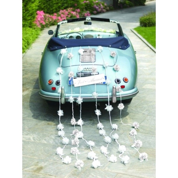 Tento set uzlů je hezký doplněk na svatební výzdobu, stahovací kokardy jsou také ideální alternativa, jak ozdobit auto nevěsty a ženicha namísto plechovek. Umístěte jich několik, abyste vytvořili krásný květinový závěs.