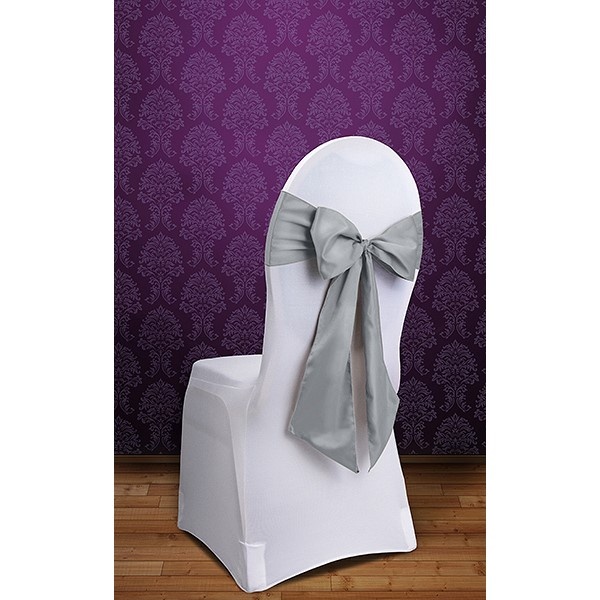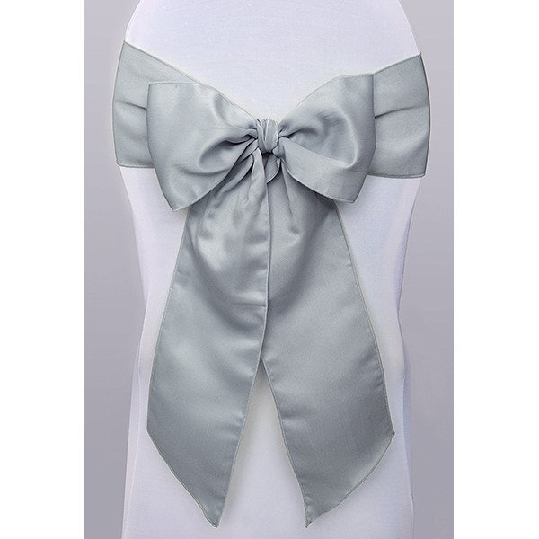 Ozdobná mašle na židle ze silného matného stříbrného saténu